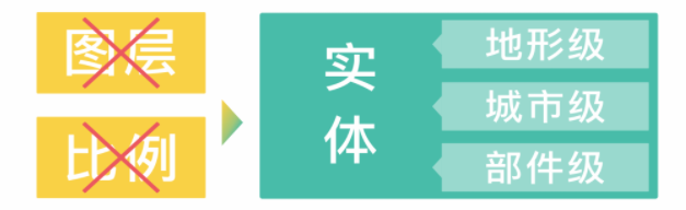 從對(duì)現(xiàn)實(shí)世界分尺度表達(dá),轉(zhuǎn)變?yōu)榘础皩?shí)體粒度和空間精度”表達(dá)。