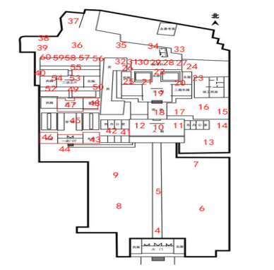 平面現(xiàn)狀圖:包含各層平面、屋頂平面和仰視平面;繪制室內(nèi)結(jié)構(gòu)構(gòu)件和非結(jié)構(gòu)構(gòu)件,完整表達(dá)空間布局;反映周邊環(huán)境、出入口、圍墻、院落、天井、門窗、洞口古樹(shù)、古井等要素;繪制室內(nèi)材質(zhì)及體現(xiàn)歷史風(fēng)貌的室外地面材料;繪制典型或具有重要?dú)v史、藝術(shù)價(jià)值的室內(nèi)布置。