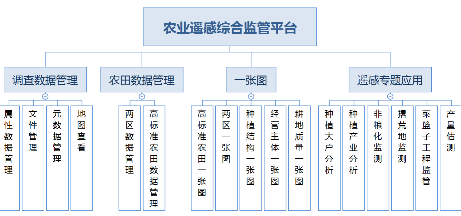 農(nóng)業(yè)遙感綜合監(jiān)管平臺(tái)針對(duì)兩區(qū)數(shù)據(jù)、高標(biāo)準(zhǔn)農(nóng)田數(shù)據(jù)等,并針對(duì)個(gè)種植業(yè)態(tài)、種植大戶等各方業(yè)務(wù),實(shí)現(xiàn)基本農(nóng)田信息的遙感管理、面積統(tǒng)計(jì)、數(shù)據(jù)上報(bào)、信息管理、統(tǒng)計(jì)分析,并同步手機(jī)遙感監(jiān)測(cè)APP端方便查詢和上報(bào)和管理。