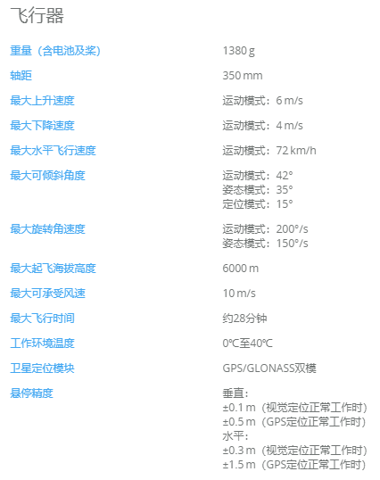 Phantom 4具有"障礙感知"、"智能跟隨"、"指點(diǎn)飛行"三大亮點(diǎn),最長(zhǎng)飛行時(shí)間約為28分鐘,高清圖像傳輸與控制距離遠(yuǎn)達(dá)7公里。還具備由五目視覺(jué)、GPS/GLONASS雙模衛(wèi)星定位系統(tǒng)、超聲波模組、傳感器冗余等組成的FlightAutonomy系統(tǒng),能實(shí)現(xiàn)無(wú)GPS信號(hào)下的精準(zhǔn)懸停,可感知前方障礙物。