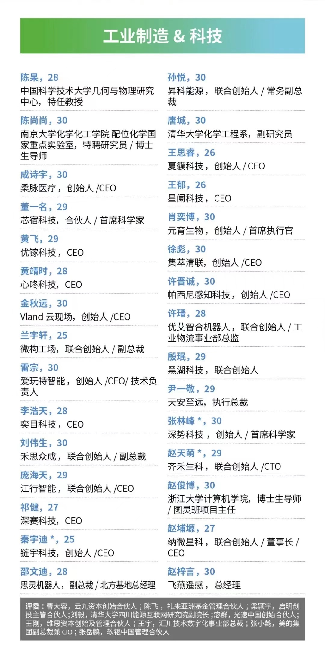 福布斯一貫以前瞻性的目光,尋找那些30歲以下,在業(yè)內嶄露頭角,或者展現(xiàn)出成為未來行業(yè)及社會翹楚的潛在力量。