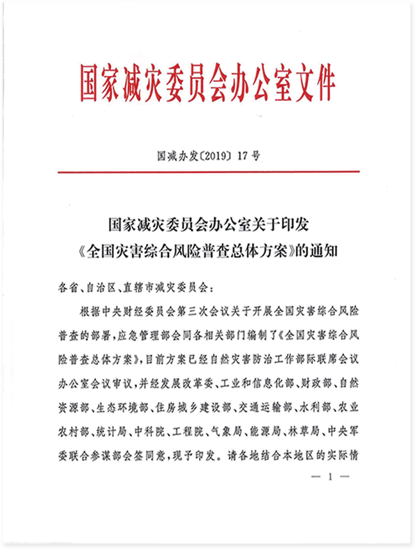 ●2019年12月,國家減災(zāi)委員會(huì)辦公室印發(fā)《全國災(zāi)害綜合風(fēng)險(xiǎn)普查總體方案》