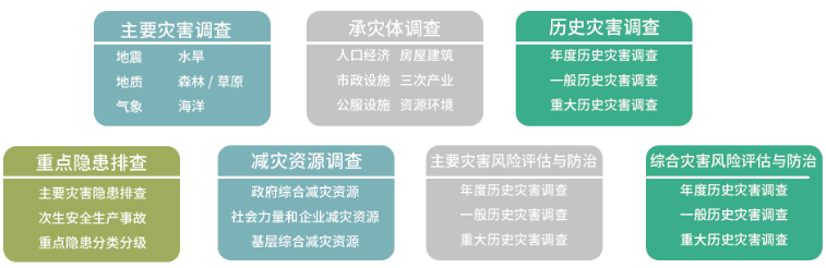 為貫徹落實(shí)中央財(cái)經(jīng)委關(guān)于提高自然災(zāi)害防治能力的部署要求,加快推進(jìn)災(zāi)害風(fēng)險(xiǎn)調(diào)查和重點(diǎn)隱患排查工程的實(shí)施,由應(yīng)急部牽頭,會(huì)同自然資源部、生態(tài)環(huán)境部、住房和城鄉(xiāng)建設(shè)部、交通運(yùn)輸部、水利部、中國氣象局、中國地震局、國家林業(yè)和草原局等10個(gè)部門開展全國災(zāi)害綜合風(fēng)險(xiǎn)普查工作,主要涉及地震災(zāi)害、地質(zhì)災(zāi)害、水旱災(zāi)害、森林和草原火災(zāi)、氣象災(zāi)害以及海洋災(zāi)害等六種災(zāi)害的普查、重點(diǎn)隱患排查和各項(xiàng)評(píng)估與區(qū)劃工作。