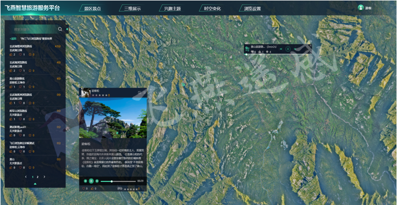 三維智慧旅游平臺(tái),基于景區(qū)實(shí)景三維模型和二維地圖,提供景區(qū)場(chǎng)景三維展示、推廣宣傳、資源管理、服務(wù)管理和景區(qū)救援等功能。