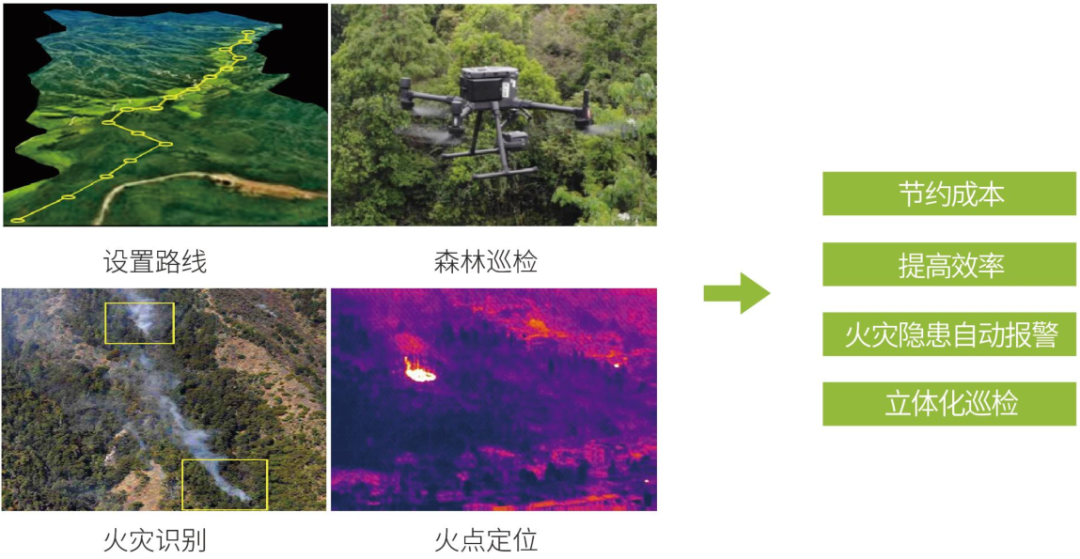 無人機巡檢可有效保證人員安全,降低人工成本,減輕運維壓力,提升工作效率;同時彌補人工巡檢隱患排查效率低、覆蓋率不足、問題處理不及時等問題,實現(xiàn)對重點風險點提前預警、及時上報,有效減少火情造成的損失。