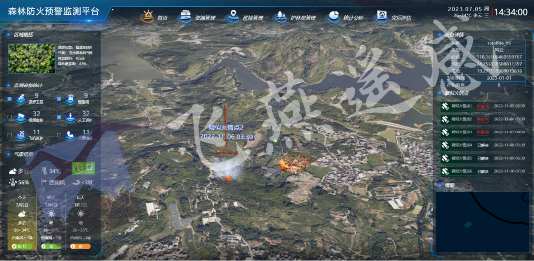 以飛燕Swift 4D為底座,利用應(yīng)用遙感技術(shù)、GIS技術(shù)、三維技術(shù)、大數(shù)據(jù)技術(shù)、人工智能等技術(shù),融合林區(qū)實景三維數(shù)據(jù)、地理信息數(shù)據(jù),監(jiān)測數(shù)據(jù),森林資源、林業(yè)設(shè)施設(shè)備、林業(yè)物資庫、巡護管護人員等多源數(shù)據(jù),構(gòu)建林業(yè)監(jiān)測一張網(wǎng)、森火全周期管理等能力,有效提升林區(qū)主管部門對火情監(jiān)測預(yù)警、應(yīng)急調(diào)度等科學(xué)決策能力水平。