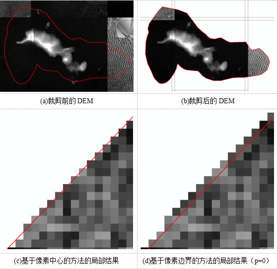圖 2 基于矢量邊界的裁剪DEM的效果,紅線為矢量邊界