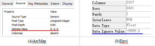 圖 3 常見GIS遙感軟件對(duì)無數(shù)據(jù)值的支持