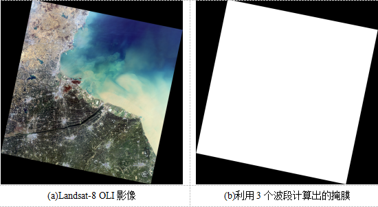 基于各個(gè)波段的掩膜,可以計(jì)算出整個(gè)數(shù)據(jù)集的掩膜。對(duì)于3波段真彩色影像,計(jì)算方法為: