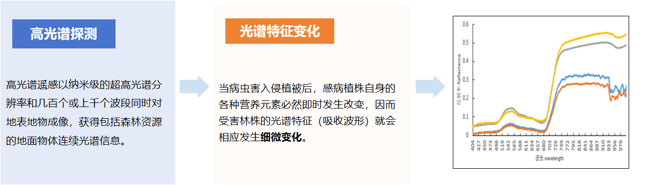 高光譜遙感以其強(qiáng)大的光譜敏感性(納米級(jí)的窄通道)能夠探測(cè)到植被在病蟲害侵害早期與健康植被的細(xì)微光譜差異,為森林病蟲害的早期監(jiān)測(cè)預(yù)警提供了可能。通過(guò)AIMS多模態(tài)航攝儀獲取高分辨率的影像數(shù)據(jù)、多光譜數(shù)據(jù)及點(diǎn)云數(shù)據(jù),時(shí)空同步的多源數(shù)據(jù)融合,結(jié)合機(jī)器學(xué)習(xí),利用林業(yè)領(lǐng)域的知識(shí)庫(kù)進(jìn)行訓(xùn)練,可以做到單木級(jí)別的松材線蟲染病樹木的自動(dòng)化提取?;跇颖菊{(diào)查、目視解譯、圖像識(shí)別、機(jī)器學(xué)習(xí)、深度學(xué)習(xí)等方法解決林業(yè)病蟲害方面的需求。