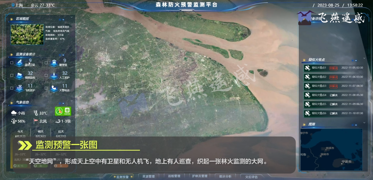 集成遙感技術(shù)、GIS技術(shù)、三維技術(shù)、大數(shù)據(jù)技術(shù)、人工智能等技術(shù),融合多源數(shù)據(jù)(林區(qū)實(shí)景三維數(shù)據(jù)、地理信息數(shù)據(jù),“空天地卡人”監(jiān)測(cè)數(shù)據(jù),融合基礎(chǔ)資源、森林資源、林業(yè)設(shè)施設(shè)備、林業(yè)物資庫(kù)、巡護(hù)管護(hù)人員等數(shù)據(jù)),實(shí)現(xiàn)災(zāi)情自動(dòng)巡航監(jiān)控、煙火智能識(shí)別、火點(diǎn)精確定位、火情分析研判、數(shù)字預(yù)案、輔助決策到災(zāi)后評(píng)估等功能。建立起森林防火事前、事中、事后全過(guò)程的業(yè)務(wù)鏈,有效提高林區(qū)日常管理效率,提升林區(qū)主管部門(mén)對(duì)火情監(jiān)測(cè)預(yù)警、應(yīng)急調(diào)度等科學(xué)決策能力水平。