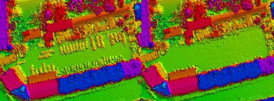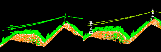 根據(jù)測(cè)區(qū)地形測(cè)點(diǎn),設(shè)置濾波參數(shù),先濾除噪點(diǎn)、然后航帶重疊區(qū)冗余、最后地面點(diǎn)和地表點(diǎn)分類。