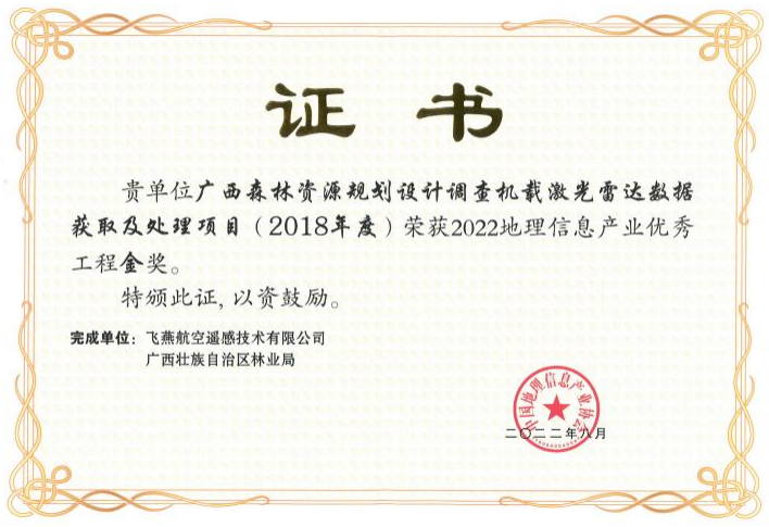 在機載激光雷達項目中,飛燕遙感先后承接了兩期航攝面積達10萬平方公里的廣西森林資源規(guī)劃設計調(diào)查項目。廣西雨水豐沛,空域復雜,在航空攝影困難類區(qū)劃分中屬于極困難區(qū)域。項目時間緊、任務重,尤其天氣窗口可遇不可求,根據(jù)測區(qū)歷史天氣情況,推測出完成時間極有可能超出交付時間。為此,飛燕遙感航攝員反復查看紅外、可見光、水汽等云圖判斷天氣變化趨勢,憑借多年對云高、云量的經(jīng)驗,成功抓住天氣窗口。通過兩個機組輪流上陣,連續(xù)5天不分晝夜,完成了1.5萬平方公里航攝任務,高質(zhì)量的數(shù)據(jù)成果與飛燕遙感的堅韌、精準不僅獲得了業(yè)主的贊揚,也獲得了中國地理信息產(chǎn)業(yè)協(xié)會的優(yōu)秀工程獎金獎。