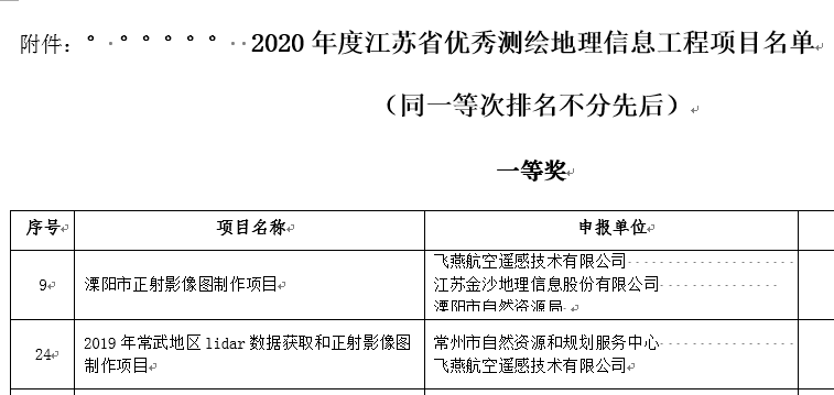 飛燕遙感榮獲2020年度江蘇省優(yōu)秀測繪地理信息工程一等獎(jiǎng)!